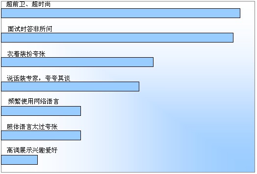 日前,横店人才网论坛(www.328job.com)针对“HR不能接受的求职者个性行为”进行调查,结果显示“形象超前卫、时尚”、“面试时答非所问”、“衣着装扮夸张”位居前三位(如图1)。