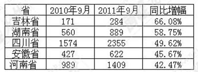 虽然广、沪、浙依然是纺织业的龙头老大,但面临招工难、劳动成本增加、资金紧张等诸多难题,一些沿海的服装、制鞋等行业纷纷选择向“西”发展。对比近2年9月份服装/纺织/皮革业的网上发布职位数可见,在职位数涨幅最快的5个省市中,中西部地区占了其中3个(见表2)。应对不断涌来的服装纺织企业,中西部城市也纷纷出台政策欢迎他们: